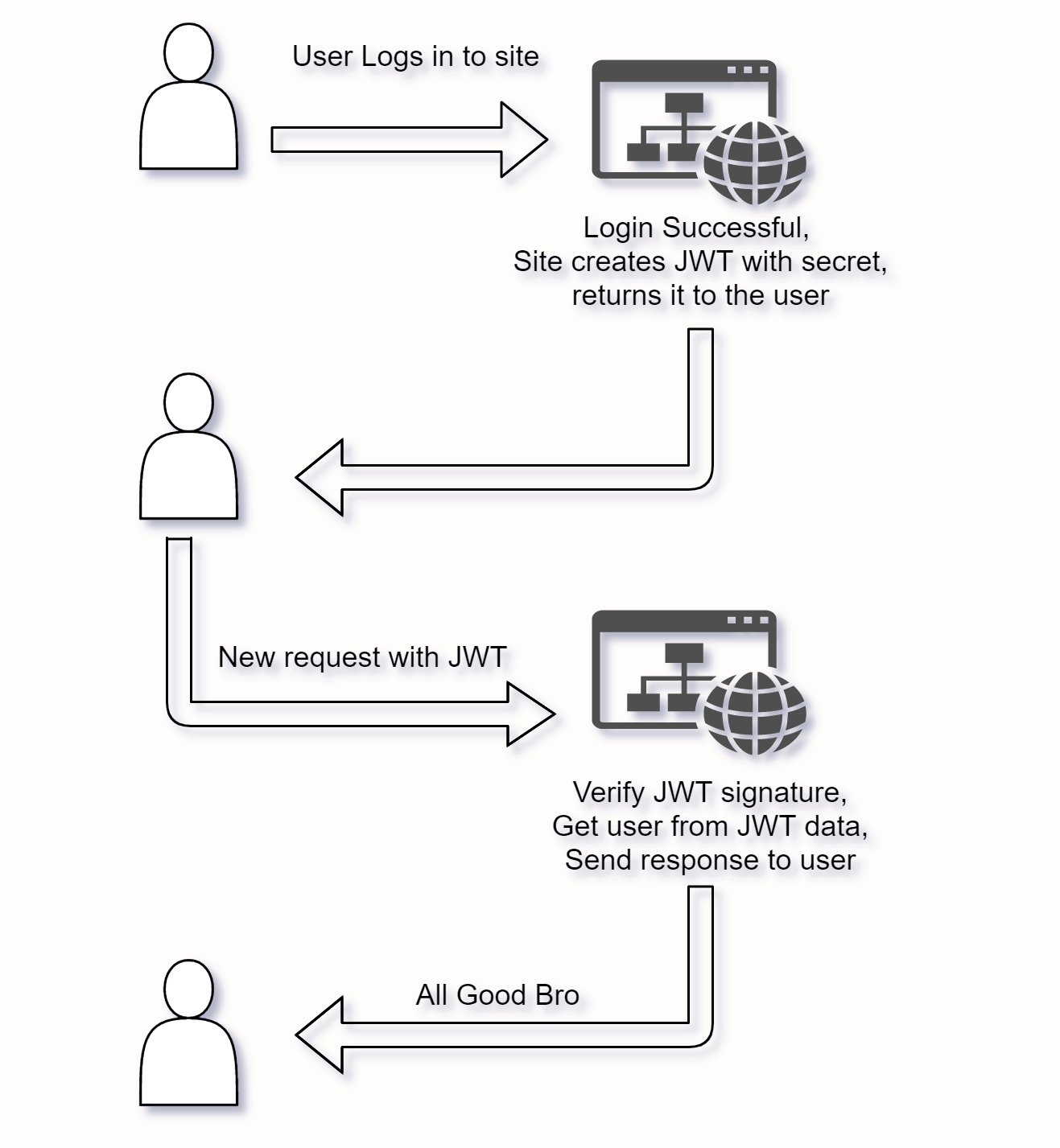 JWT (pronounced jot) is pretty much an open standard used to create self-contained access tokens to be used for Authorisation (NOT Authentication), Instead of storing user information server side, user data is encoded, serialised and signed then stored client side.